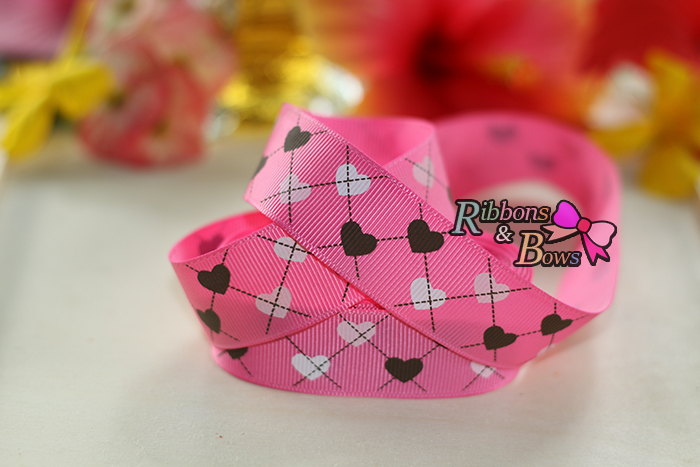 ริบบิ้นผ้าพิมพ์ลายหัวใจน่ารักกว้าง 22 mm #HT1